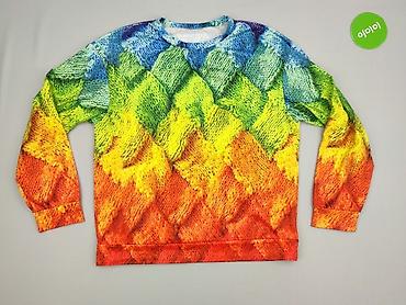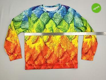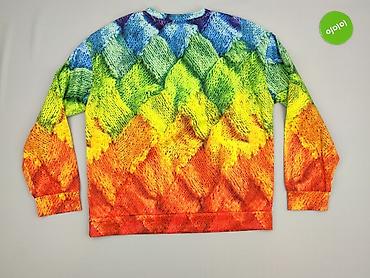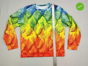 Bluza damska, rozmiar M, z efektownym, tęczowym nadrukiem imitującym gruby splot dzianiny.