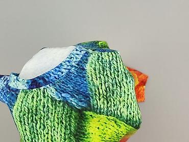 - Wzór/kolor: pełne spektrum barw (niebieski–zielony–żółty–pomarańczowy–czerwony) w formie dużych „łusek”/rombów przypominających fakturę wełny; nadruk na całej powierzchni, również z tyłu i na rękawach.