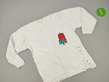 Bluza damska z długim rękawem, biała, z aplikacją misia w czapce na przodzie. - Krój: klasyczny, okrągły dekolt - Detale: dzianinowe, prążkowane ściągacze przy mankietach i na dole; nadruk/aplikacj...