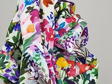 Bluza damska z nadrukiem kwiatowym - Krój oversize z opuszczoną linią ramion i zwężanym dołem (ściągacz na dole). - Okrągły dekolt. - Rękawy 3/4, lekko bufiaste, z możliwością podwinięcia. - Mater...Rozmiar: