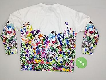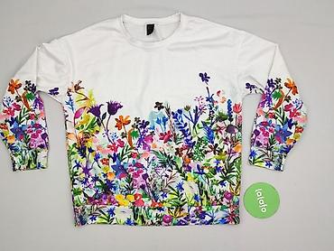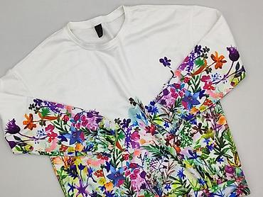 Bluza damska z nadrukiem kwiatowym - Kolor: biały z dużym, kolorowym nadrukiem kwiatów z przodu - Krój: klasyczna bluza z długim rękawem, raglanowe rękawy - Dekolt: okrągły - Wykończenie: ściągacz...