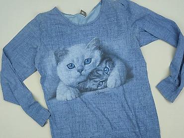Bluza damska z długim rękawem, rozmiar S. Świąteczny motyw – całość pokryta realistycznym nadrukiem kotów w czapkach Mikołaja (przód i tył). Okrągły dekolt, klasyczny krój. Materiał z metki: 95% p...