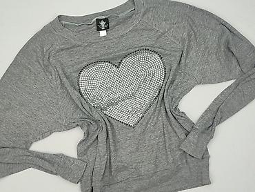 Szara bluza damska C&A (Clockhouse), rozmiar L. - Krój: klasyczna bluza z okrągłym dekoltem, rękawy raglanowe, ściągacze przy kołnierzu, mankietach i u dołu. - Przód: duży nadruk z sercem i napise...