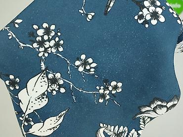 - Wzór: botaniczny z ważkami, motylami i kwiatami; nadruk w odcieniach bieli na tle petrolowo-niebieskim