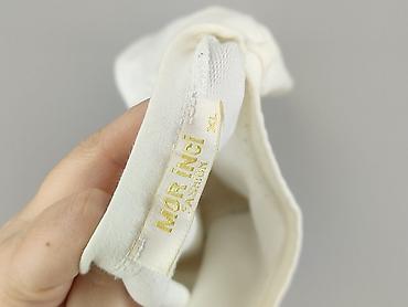 Biała bluza damska MOR INCI Fashion, rozmiar XL. Klasyczny krój z okrągłym dekoltem i długim rękawem. Z przodu duży błyszczący motyw z cekinów w kolorze złotym, obszyty ciemną lamówką – efektowny akcent nadający stylizacji charakteru.