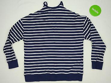 Damska bluza w paski, 100% bawełna - Fason: luźny, prosty krój z obniżoną linią ramion - Wzór: poziome granatowo-białe paski w stylu marynarskim - Rękawy: długie, zakończone delikatnym ściągaczem ...Rozmiar: