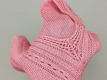 Ażurowy sweter damski, różowy pastel - Rozmiar: L (z metki) - Skład: 100% poliester - Fason: luźniejszy, dzianina ażurowa z dekoracyjnym, liściastym splotem - Dekolt: w kształcie litery V z szerok...