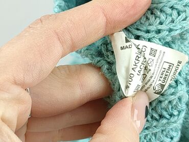 Sweter damski, turkusowy, szydełkowy - Krój: luźny, z obniżoną linią ramion i lekko zwężanym dołem - Rękawy: 3/4 z elastycznymi, prążkowanymi mankietami - Dekolt: okrągły - Splot: gęsty, wyraźna f...