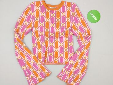Ażurowy sweter damski AMISU Knitwear - Rozmiar: S (zgodnie z metką) - Skład: 100% akryl - Kolorystyka: poziome pasy w odcieniach ecru, granatu, czerwieni, brązu i żółtego - Fason: dopasowany, dług...