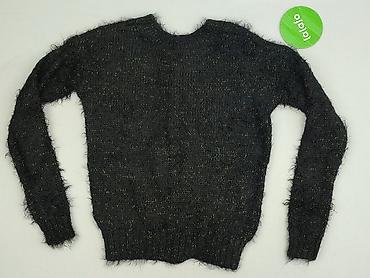 Sweter damski, czarny, gruby splot - Model: sweter z długim rękawem - Kolor: czarny - Fason: klasyczny, lekko dopasowany - Dekolt: okrągły - Dzianina: gruby, elastyczny splot; przód zdobiony piono...Stan: