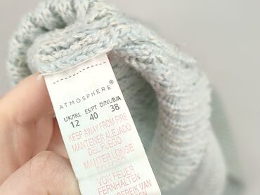 Ażurowy sweter damski Atmosphere - Kolor: kremowy/ecru - Rozmiar z metki: 10 (38) - Fason: klasyczny, z okrągłym dekoltem - Dzianina: grubsza, ażurowa na przodzie i rękawach; tył gęstszy, w drobny...