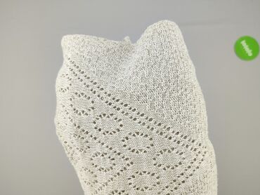 Beżowy sweter damski z długim rękawem, wykonany z dzianiny. Charakteryzuje się okrągłym dekoltem oraz misternym, ażurowym wzorem na przodzie. Idealny do codziennych stylizacji, zapewnia komfort nos...