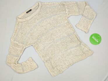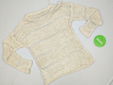Damski sweter JANINA, rozmiar S. - Kolor: ecru/kremowy w czarne, poziome pasy (styl marynarski). - Fason: klasyczny, proste body, długi rękaw, okrągły dekolt. - Splot: ażurowo‑siatkowy, lekko luźny...