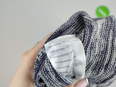 Damski sweter dzianinowy w kolorze niebieskim (melanż). - Fason: luźniejszy, z obniżoną linią ramion; półokrągły dekolt; dłuższy, zaokrąglony dół z prążkowanym ściągaczem. - Rękawy: długie, zakoń...