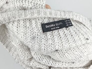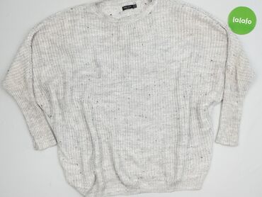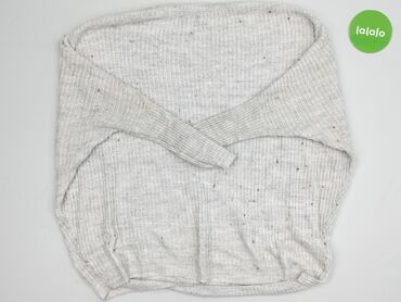 Sweter damski marki Bershka w kolorze beżowo-szarym. Charakteryzuje się luźnym fasonem i szerokimi rękawami, które zwężają się przy mankietach. Wykonany jest z miękkiego, prążkowanego materiału z drobnymi, kolorowymi wstawkami, nadającymi mu unikalny wygląd. Idealny na co dzień, zapewnia komfort noszenia i swobodę ruchów.