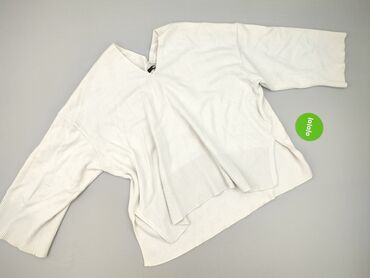 Sweter BIKBOK, rozmiar XS - Kolor: kremowy/ecru - Dzianina prążkowana, średniej grubości - Krój: luźny, opuszczona linia ramion, okrągły dekolt - Wykończenie typu distressed – celowe przetarcia i ...