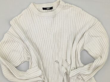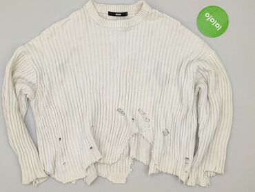 Sweter damski Bik Bok - Kolor: kremowy/ecru - Rozmiar z metki: XL - Fason: luźny, oversize z obniżoną linią ramion - Dekolt: w kształcie litery V - Rękawy: 3/4 z szerokimi, prążkowanymi mankietami...