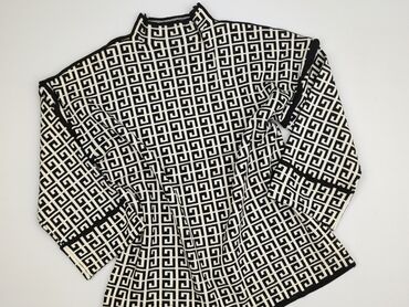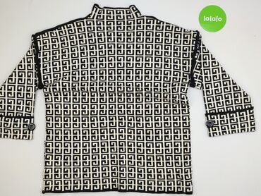 Sweter damski z dzianiny, rozmiar S. - Kolor: czarno‑biały - Wzór: gęsty, geometryczny/etniczny, pasy na całej powierzchni - Krój: klasyczny, prosty - Rękawy: długie - Dekolt: okrągły - Materiał: m...