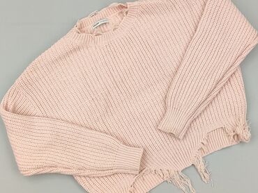 Sweter damski CROPP - Kolor: jasny pudrowy róż - Rozmiar z metki: S - Fason: dopasowany, długość do bioder - Rękaw: długi - Dekolt: okrągły (crew neck) - Dzianina: ażurowa, prążkowana w pionowe pa...