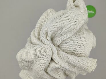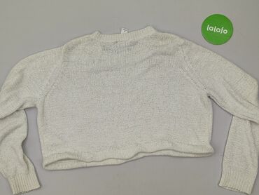 Biały sweter damski z długimi rękawami, wykonany z dzianiny o ażurowym splocie. Charakteryzuje się okrągłym dekoltem i ozdobnymi, falowanymi wykończeniami na brzegach. Sweter posiada obszerny krój,...