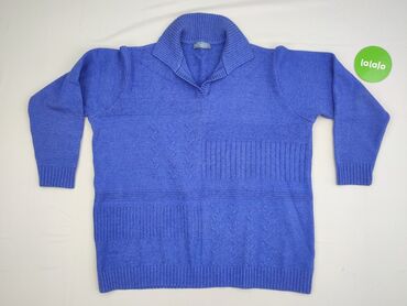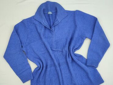 Sweter damski, dzianinowy, w kolorze denimowego niebieskiego. - Fason: luźny, oversize z obniżoną linią ramion - Dekolt: okrągły, prążkowany - Rękaw: długi - Dzianina: przewiewny, ażurowy splot o ...