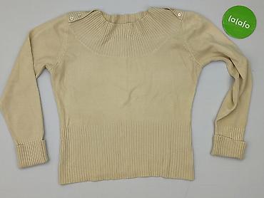 Sweter damski, kremowy, dzianinowy - Model: sweter o prostym kroju, z długim rękawem - Kolor: kremowy/ecru - Splot: grubsza, fakturowana dzianina (oczka wyraźne, miękkie) - Dekolt: łagodnie łódkow...