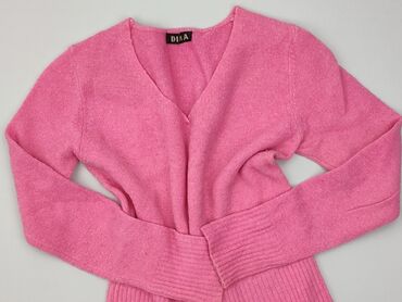 Sweter damski, różowy - Krój: klasyczny, z dekoltem w serek (V-neck) - Rękawy: długie - Wykończenie: ściągacze przy mankietach i u dołu - Materiał: miękka, dzianinowa tkanina o gładkim splocie (pr...