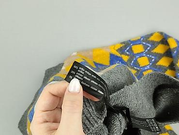 - Wzór: kolorowy argyle/diamenty na karczku i rękawach; dominujące barwy: szary melanż, żółty, niebieski, beżowy, biały, grafit. Na części wzoru drobne cekiny dodające delikatny połysk.