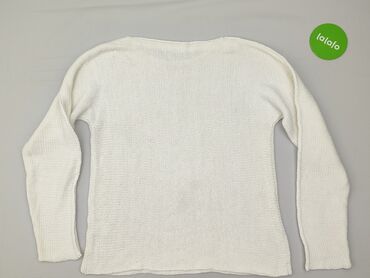 OkrągłySweter damski, dzianinowy, w kolorze ecru/łamanej bieli.