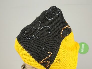 OkrągłySweter damski, dzianinowy, żółty z czarnymi akcentami