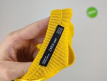 Sweter damski ZARA, rozmiar S - Kolor: musztardowy - Fason: klasyczny, z okrągłym dekoltem - Długość rękawa: długi - Dzianina: ażurowa/koronkowa faktura z geometrycznym wzorem na całej powierzchni...