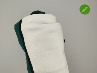 - Wzór: szerokie, poziome pasy w kolorach butelkowa zieleń, ecru/kremowy i czarny; cienkie czarne lamówki oddzielające bloki kolorów