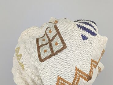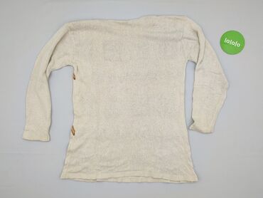 Sweter damski, kremowy, dzianina o grubym splocie. - Fason: luźny, z opadającą linią ramion - Dekolt: łagodnie zaokrąglony - Rękawy: długie, zakończone elastycznymi ściągaczami - Dół: ściągacz z d...