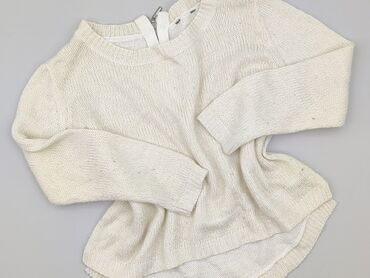 OkrągłySweter damski, dzianinowy, ecru/kremowy