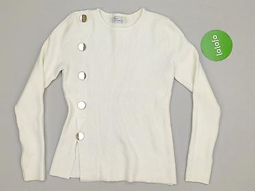 Sweter damski, kremowy/śnieżnobiały, dzianina o drobnym prążku z dekoracyjnym warkoczowym panelem na środku przodu. - Fason: klasyczny, lekko dopasowany - Golf/ półgolf z elastycznym ściągaczem -...Stan: