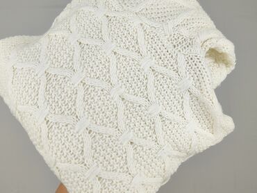Sweter damski, dzianinowy, w kolorze ecru/kremowym. - Fason: wydłużony (tuniko-sweterek), prosty - Dekolt: łódka/lekko zaokrąglony - Rękaw: 3/4 - Dzianina: ażurowa, wyraźny, falowany splot; miękki...