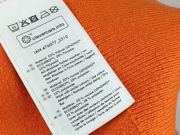 Sweter damski Esmara, pomarańczowy - Fason: klasyczny, z okrągłym dekoltem - Rękawy: długie - Wykończenia: ściągacze przy mankietach i u dołu; kontrastowa, jasna lamówka na końcach rękawów i na do...