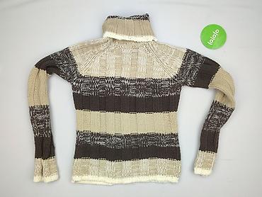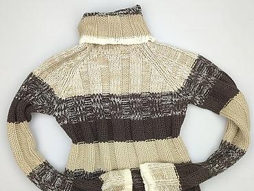 Sweter damski z golfem, ecru/śmietankowy - Fason: dopasowany, długość do bioder - Dekolt: szeroki golf typu komin, wywinięty, prążkowany - Rękawy: długie, zakończone szerokim ściągaczem - Dół: sze...
