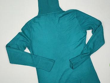 - Detale: wysoki, prążkowany golf; szerokie, prążkowane ściągacze przy mankietach i u dołu; gładka dzianina