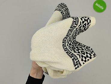 - Kolor: kremowy/ecru z czarno-białym, geometrycznym wzorem żakardowym na ramionach, dekolcie i u dołu