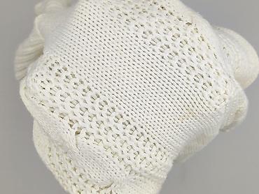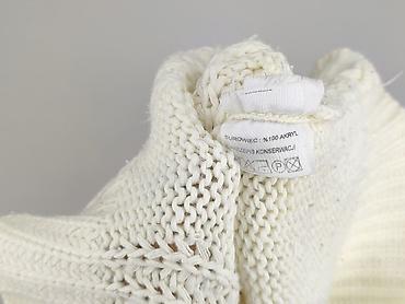 Sweter damski, kremowy, dzianinowy - Fason: klasyczny, z okrągłym dekoltem i długim rękawem - Kolor: kremowy/ecru - Splot: wyraźna, grubsza dzianina; przód z dekoracyjnym ażurowym wzorem w romby/s...