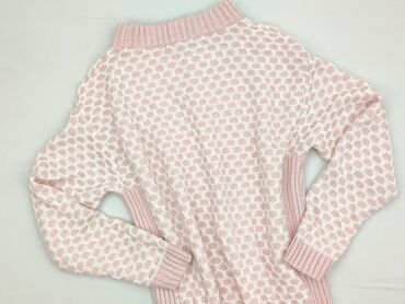 Sweter damski, różowy - Krój: luźny, z obniżoną linią ramion i dekoltem w serek - Długość: do bioder - Rękawy: długie, zakończone szerokim ściągaczem - Splot: ażurowo-teksturalny, miękki i sprężys...