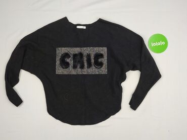 Sweter damski L.C.2, czarny, z ozdobnymi dżetami - Fason: luźny, nietoperzowe rękawy (szerokie w ramionach, zwężane przy nadgarstkach) - Dekolt: okrągły - Kolor: czarny - Materiał: prążkowana dzia...