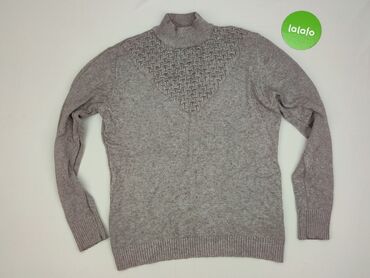 Damski szary sweter z golfem, wykonany z miękkiej dzianiny, idealny na co dzień. Charakteryzuje się wysokim, składanym golfem, ozdobionym rzędem czterech guzików po prawej stronie. Sweter ma długie...