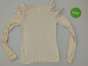 Sweter damski H&M, rozmiar XS - Kolor: kremowy/ecru - Fason: klasyczny, z okrągłym dekoltem - Splot: efektowny wzór fal/zygzaków na przodzie z ażurowymi prześwitami; tył i rękawy w drobnym, gęstym...