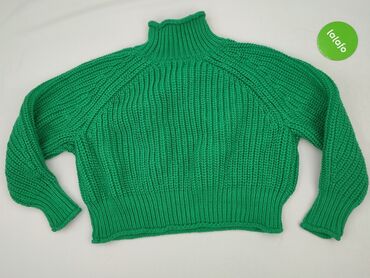 Sweter damski H&M, ażurowy, krótki (crop) - Rozmiar: XS (EUR XS / US XS) – metka 160/80A - Kolor: intensywna zieleń - Fason: krótki crop, długie rękawy, okrągły ściągacz przy szyi oraz na dole i p...