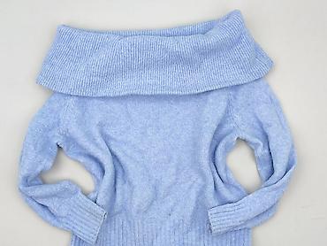 Sweter damski H&M, rozmiar XS - Kolor: melanż błękitu z drobnymi, jaśniejszymi i ciemniejszymi nitkami - Fason: klasyczny, z okrągłym dekoltem; delikatnie dłuższy tył - Rękawy: długie - Wykończeni...Stan: