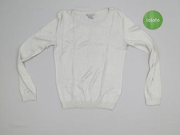 Sweter damski H&M, rozmiar S (EUR S, US S, 165/88A) - Kolor: odcienie szarości z melanżem i delikatną, połyskującą nitką - Krój: klasyczny, okrągły dekolt, długie rękawy, ściągacze przy mankietach ...