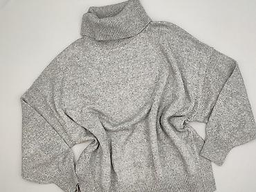 Sweter damski AMISU Knitwear z golfem - Kolor: jasnoszary melanż - Rozmiar z metki: S - Fason: luźniejszy krój, obniżona linia ramion, wydłużony tył, rozcięcia po bokach - Dekolt: wysoki golf - Rę...