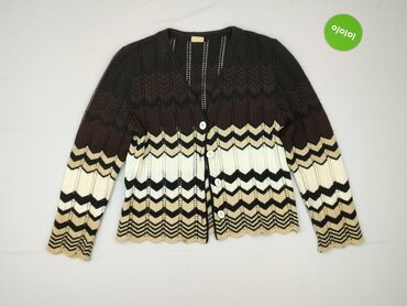 W serekUżywany, ale w idealnym stanie, rozpinany sweter damski marki Articove. Wykonany z mieszanki wełny i akrylu, zapinany na trzy guziki. Sweter jest w odcieniach brązu, beżu i bieli, tworząc wzór w zygzaki.
